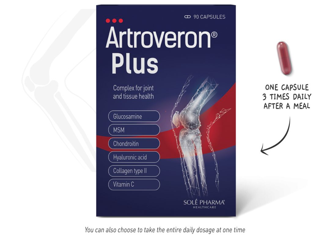 Artroveron® Active+ is a high dose medical glucosamine sulfate and chondroitin sulfate complex that helps to repair joint cartilage and maintain healthy joints so you can continue doing daily activities that you love without pain and discomfort.